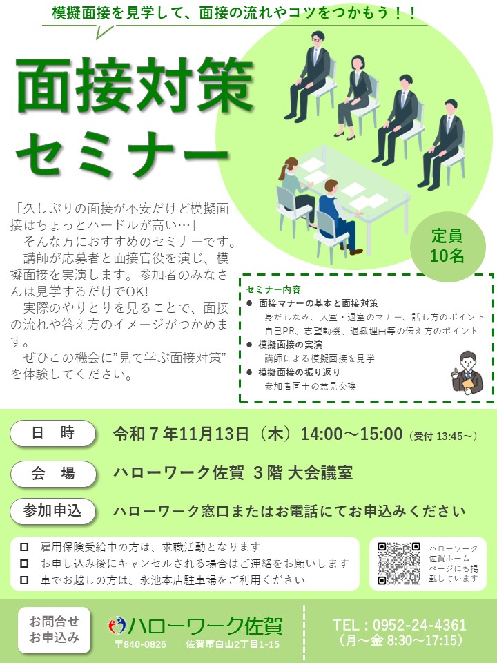 - ハローワーク佐賀 面接対策セミナーのお知らせ