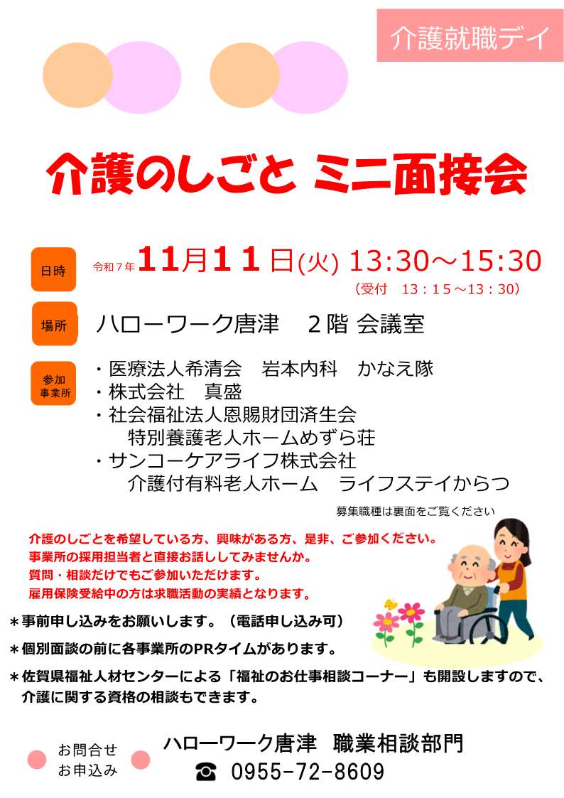 下記日程にて、介護のしごとミニ面接会を実施いたします。
