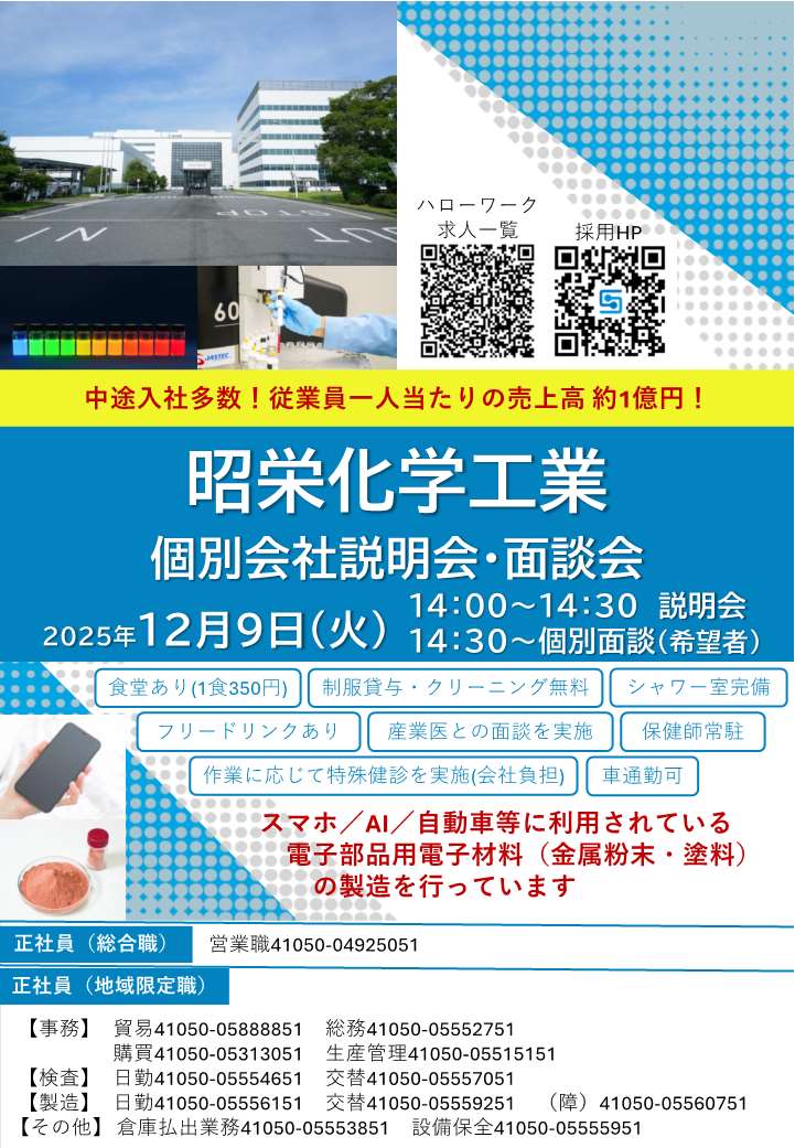 日時 : 12月9日(火)14:00~14:30(企業説明会)、14:30~(個別面談会 ※希望者のみ)
