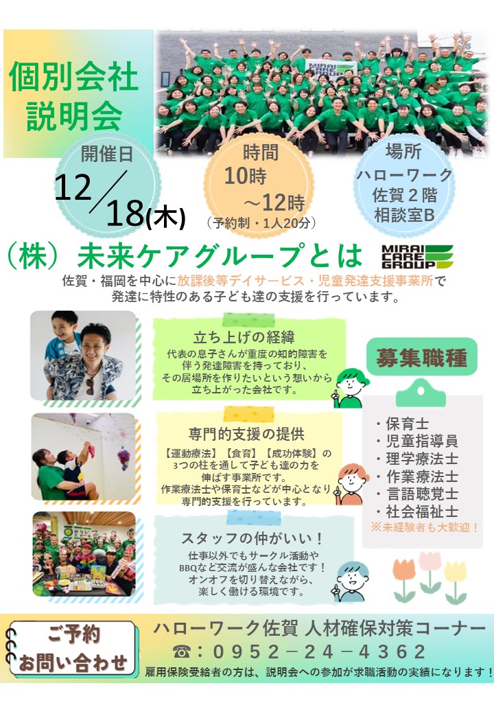 【12月】ハローワーク佐賀 個別会社説明会のお知らせ