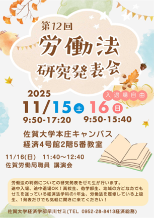 労働法研究発表会の詳細は、画像をクリックして佐賀大学経済学部のホームページでご確認ください。