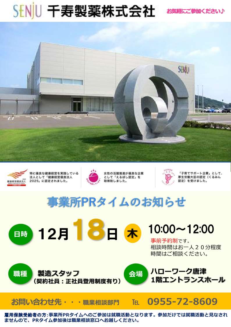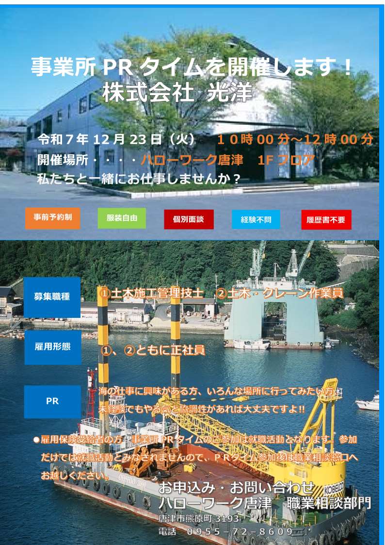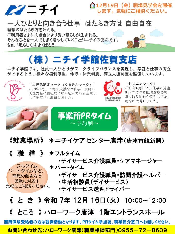 - 【ハローワーク唐津・12月】事業所PRタイムのお知らせ