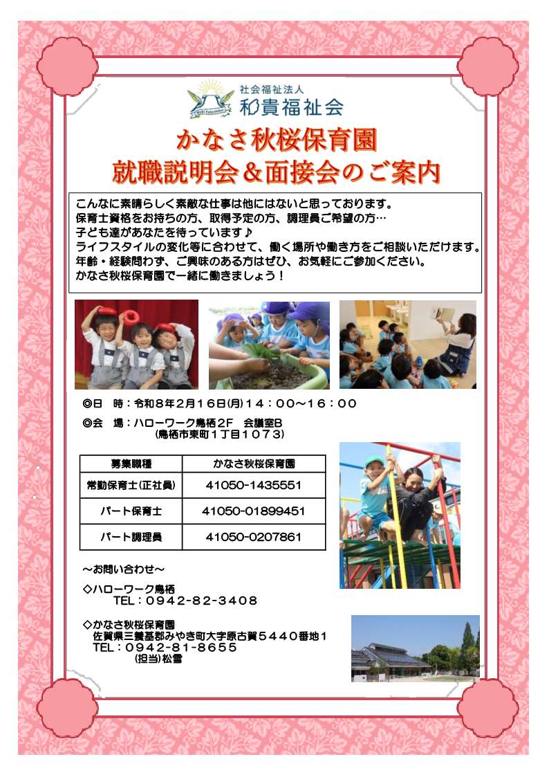 ◆社会福祉法人 和貴福祉会 かなさ秋桜保育園
