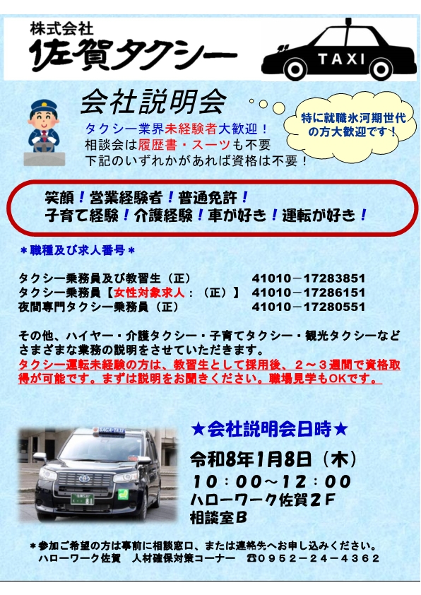 - 【1月】ハローワーク佐賀 会社説明会のお知らせ