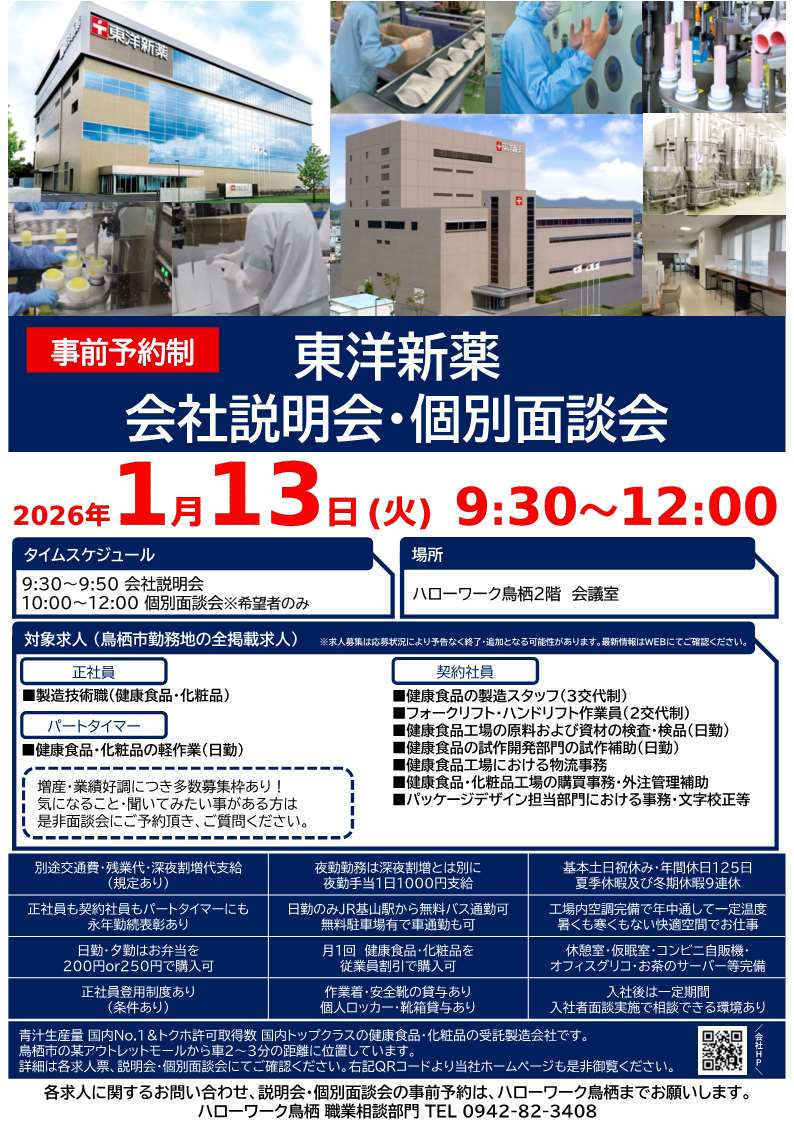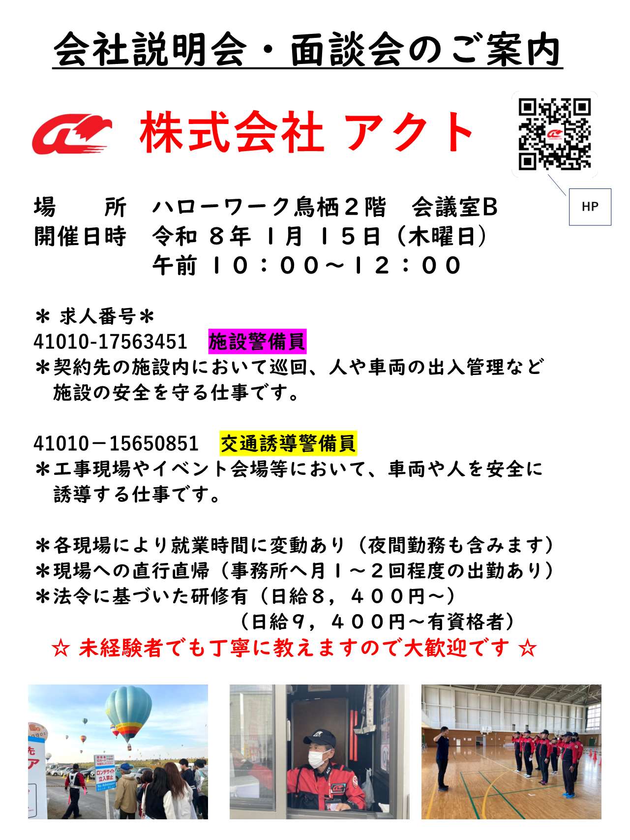 日時 : 1月13日(火) 全体説明会 9:30~9:50