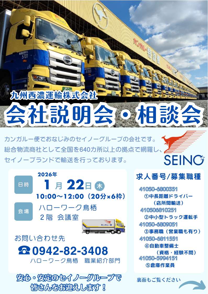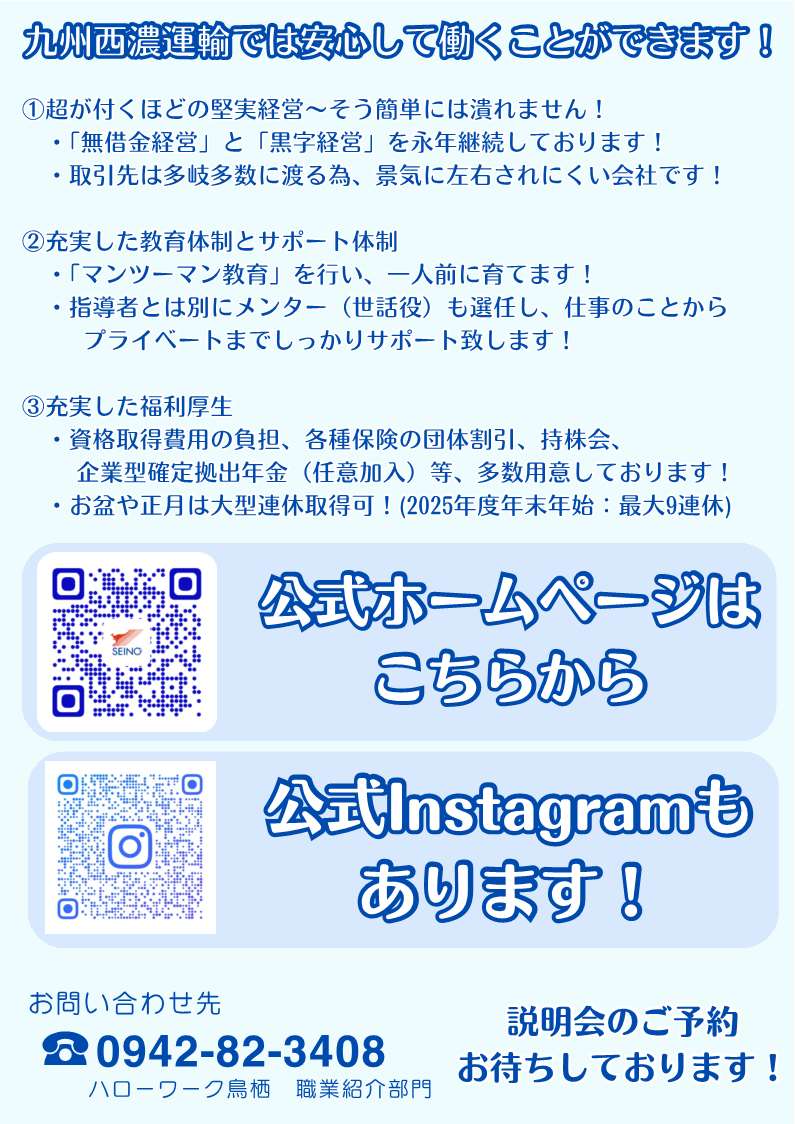 職種 :中長距離ドライバー、中小型トラックドライバー、事務職、自動車整備士、倉庫作業員