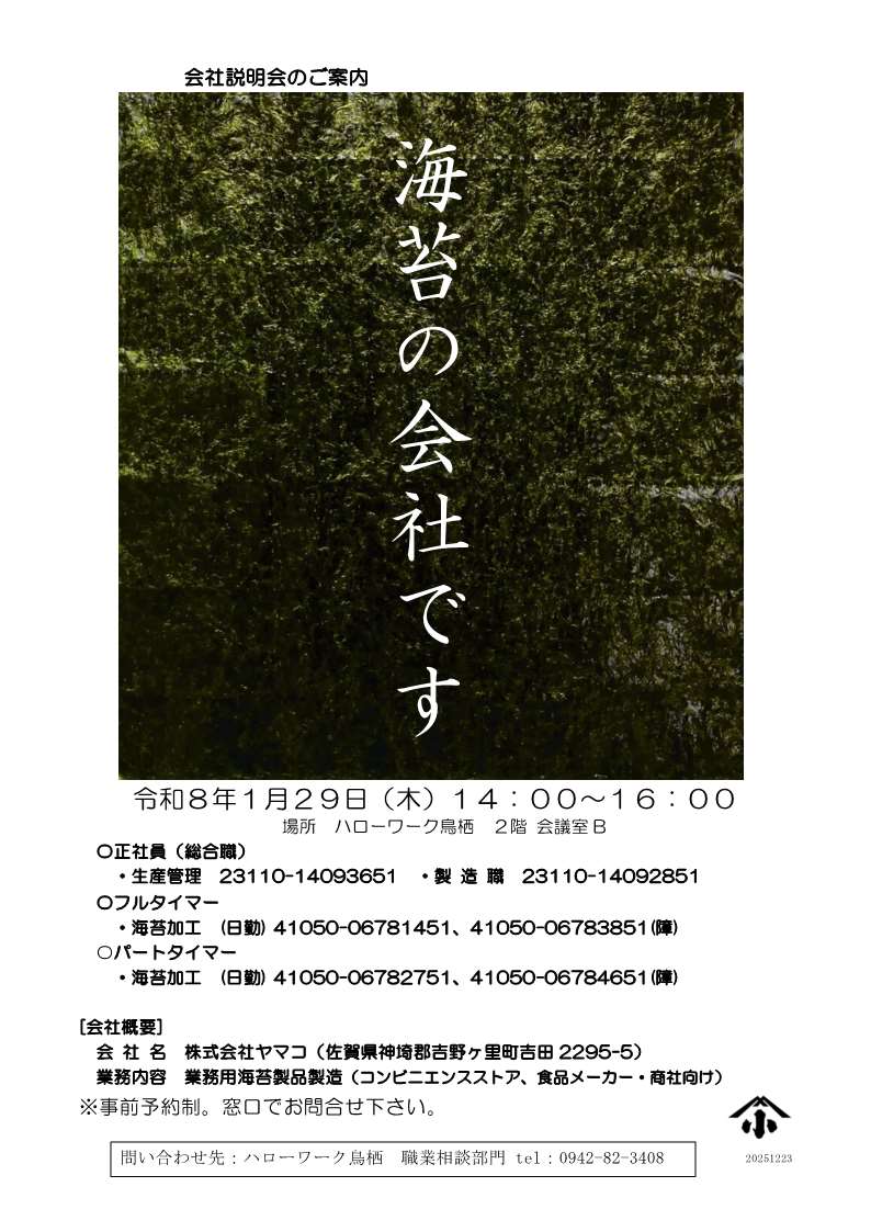 職種 :《正》生産管理、製造職 《パ》海苔加工