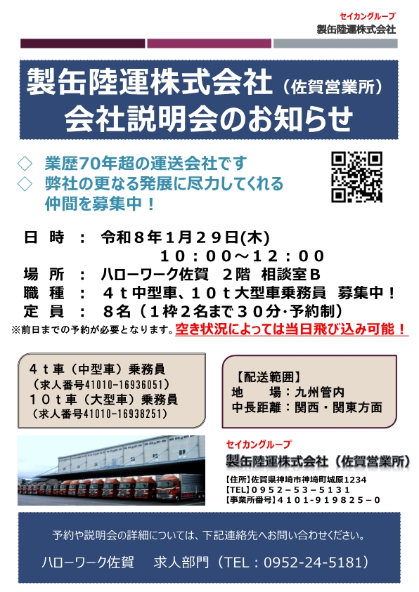 - 【1月29日】ハローワーク佐賀 会社説明会のお知らせ