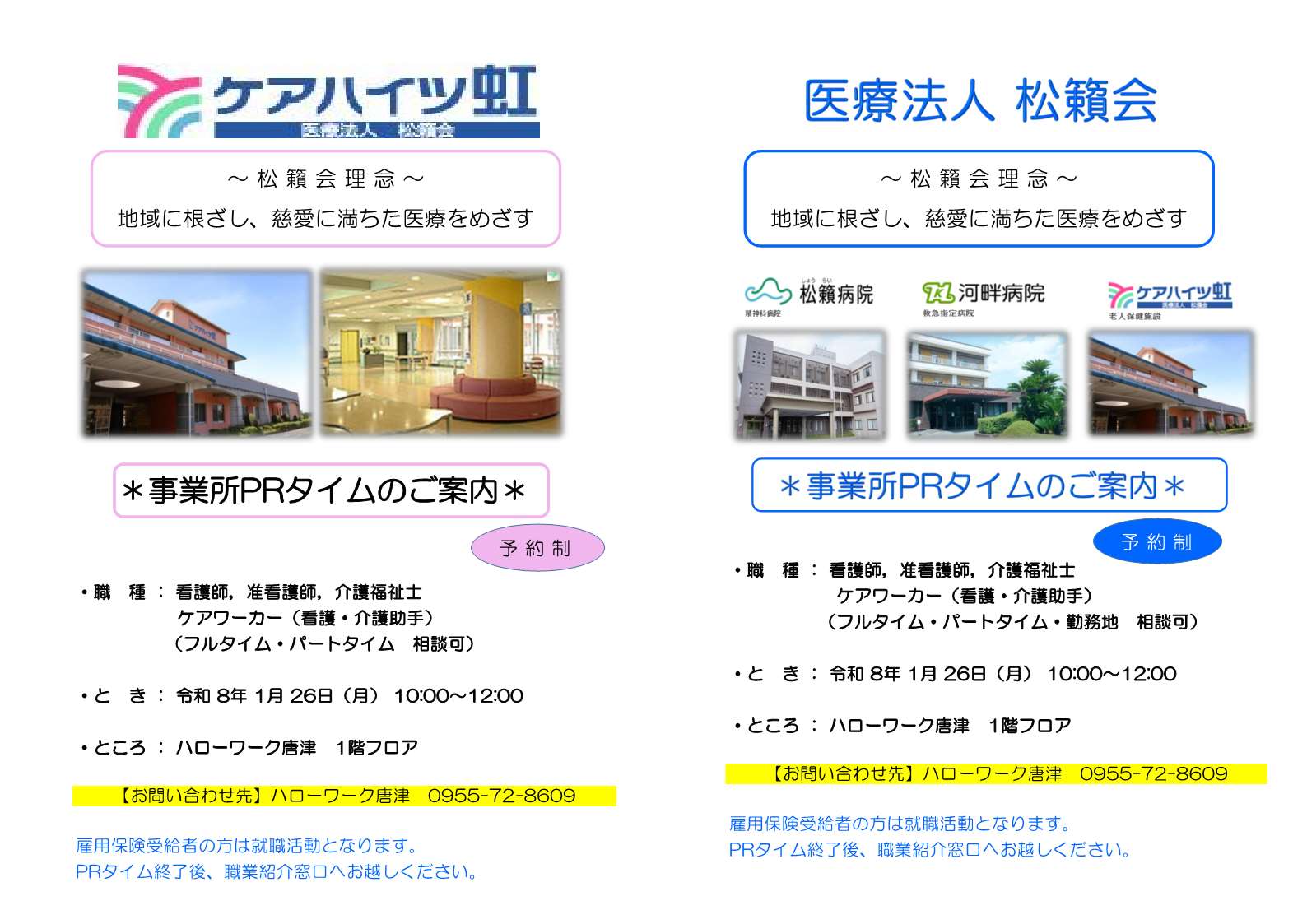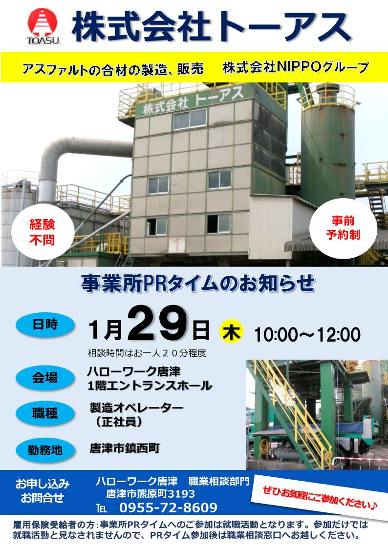- 【ハローワーク唐津・1月】事業所PRタイムのお知らせ