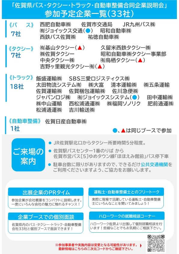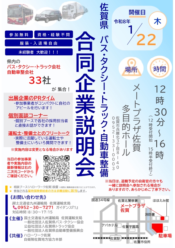 - 佐賀県バス・タクシー・トラック・自動車整備合同企業説明会のお知らせ