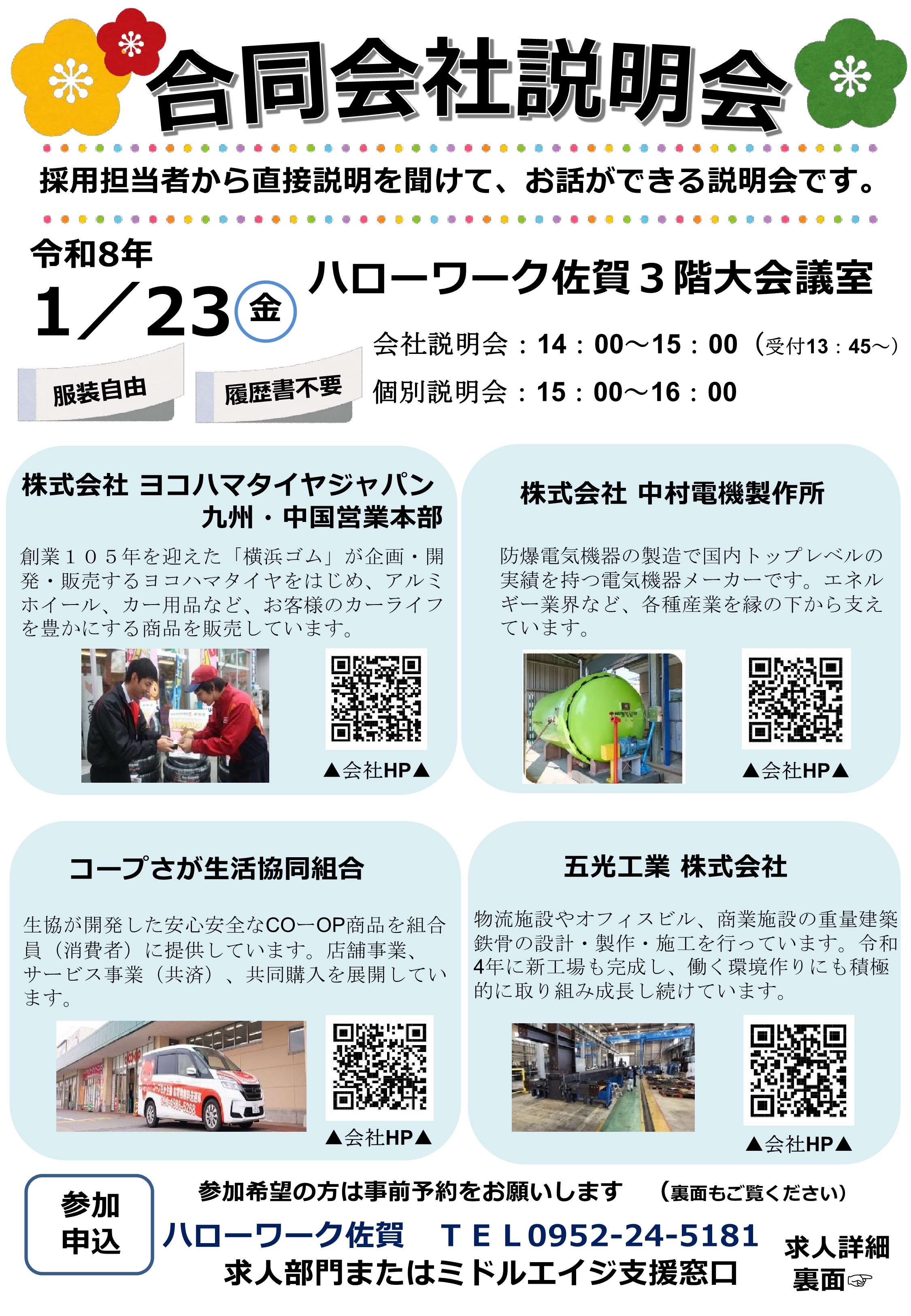 - 【1月23日】ハローワーク佐賀 合同会社説明会のお知らせ