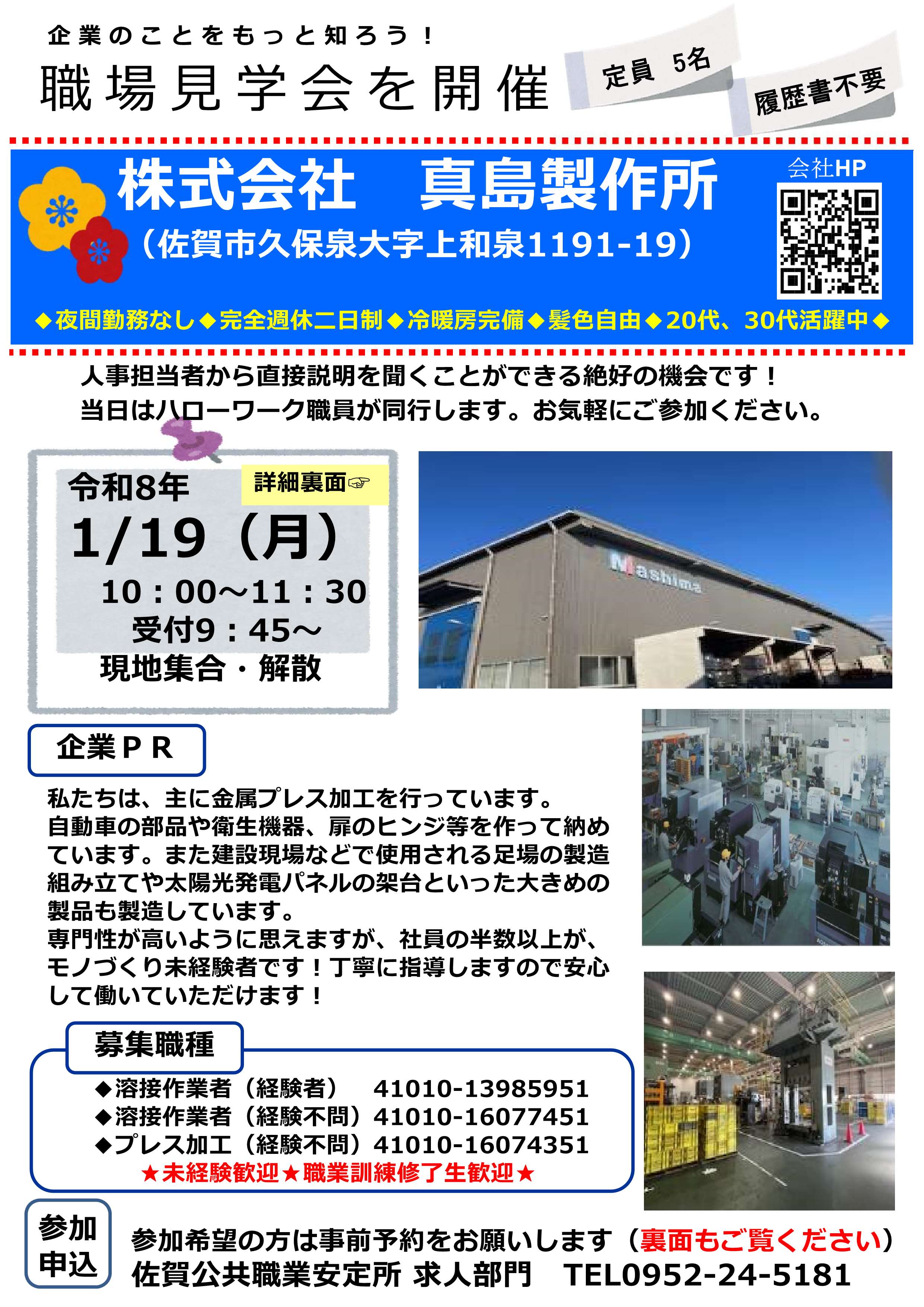 - 【1月19日】ハローワーク佐賀 職場見学会のお知らせ
