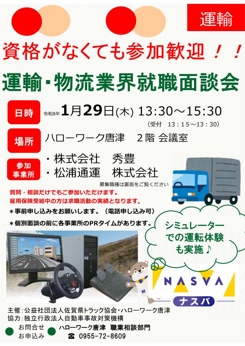 下記日程にて、運輸・物流業界合同就職面談会を実施いたします。