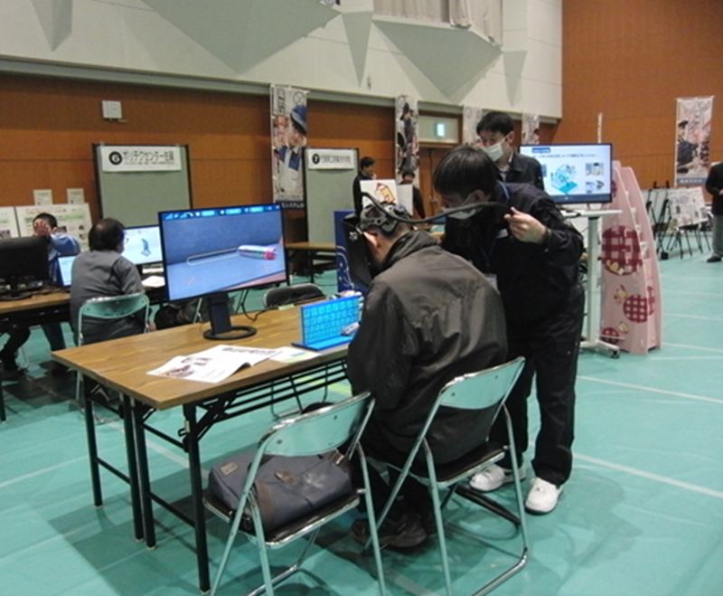 ポリテクセンター佐賀のブースでAR技術を利用した溶接を体験する参加者