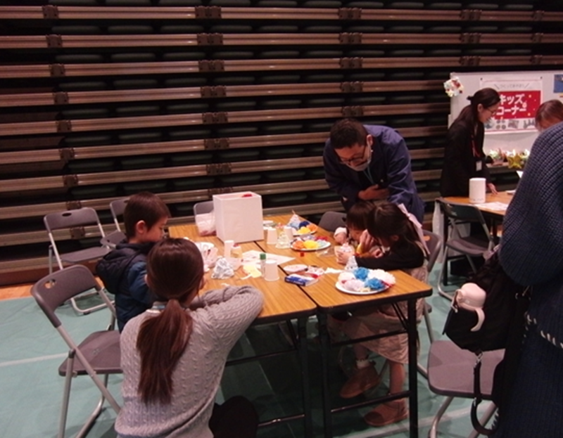 KIDSコーナーでクリスマス工作を楽しむ子どもたち