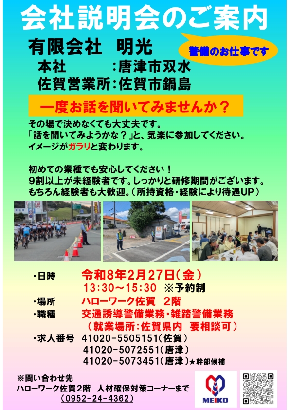 - 【2月】ハローワーク佐賀 会社説明会のお知らせ