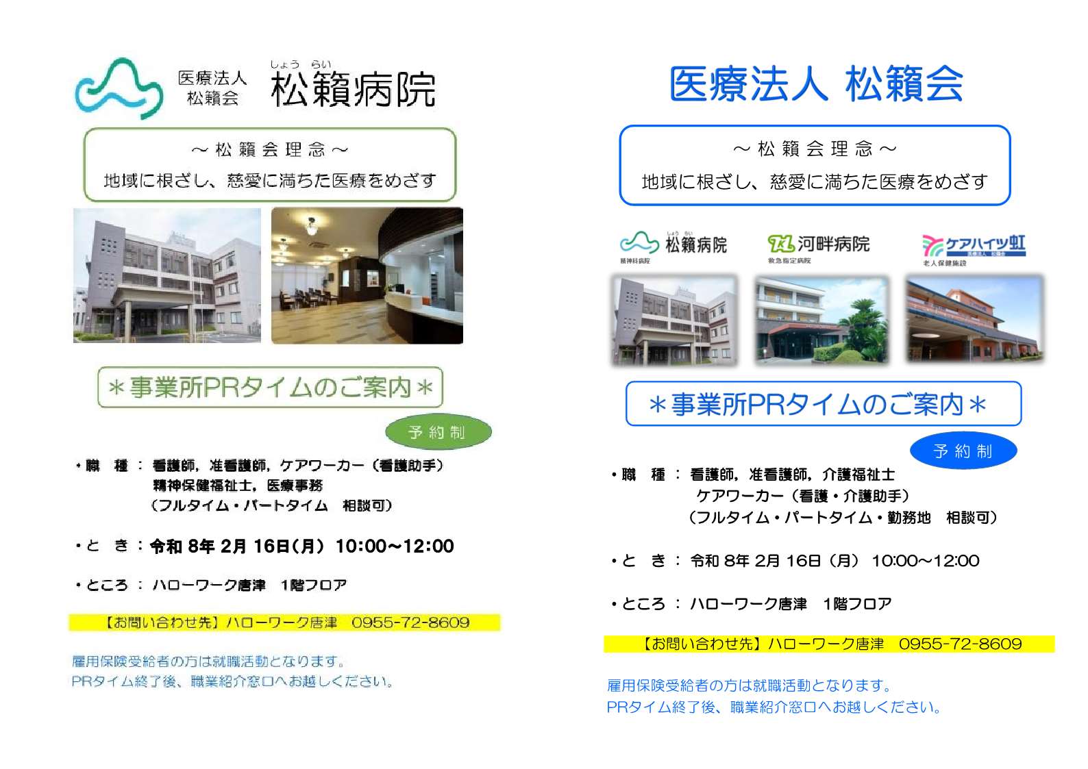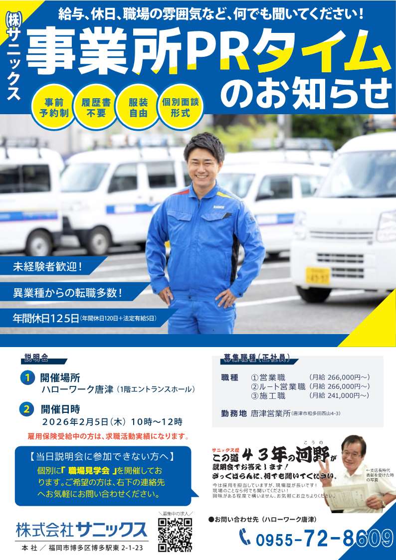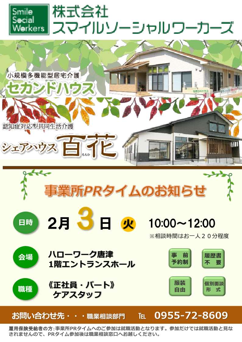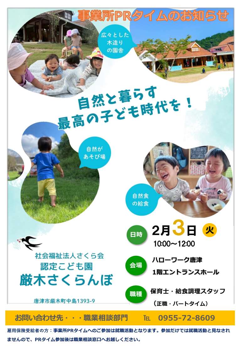 - 【ハローワーク唐津・2月】事業所PRタイムのお知らせ