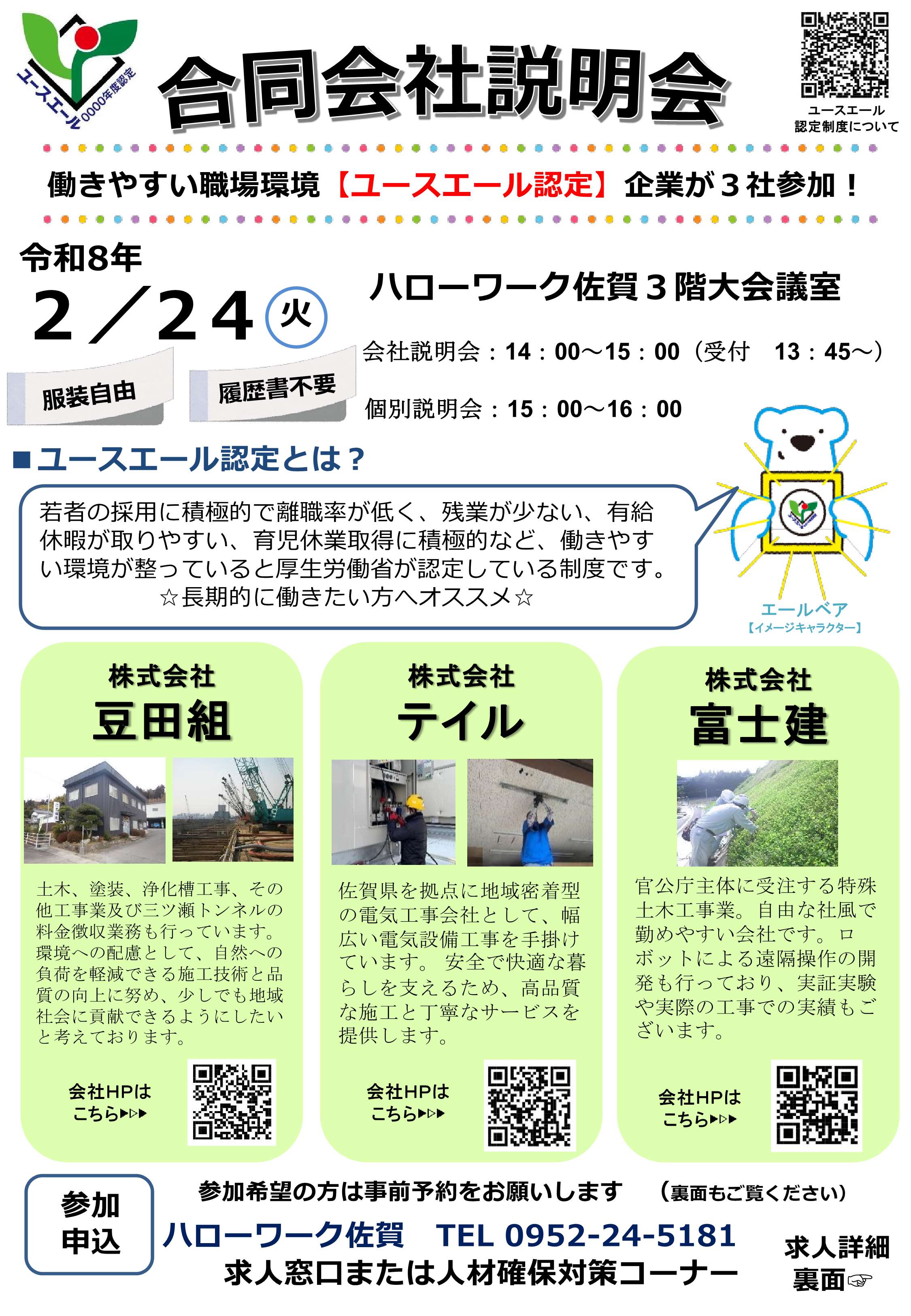 - 【2月24日】ハローワーク佐賀 合同会社説明会のお知らせ