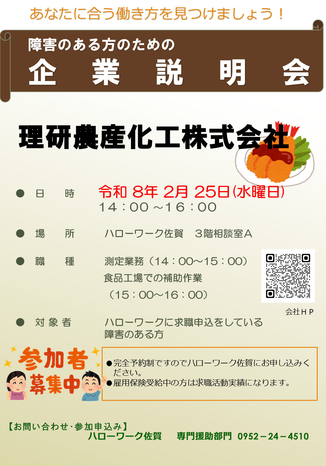 理研農産化工株式会社の障害者のための個別会社説明会を開催します。