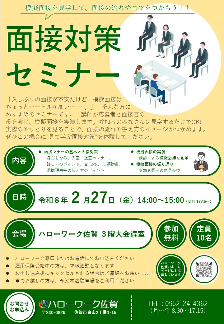 - 【2月27日】ハローワーク佐賀 面接対策セミナーのお知らせ