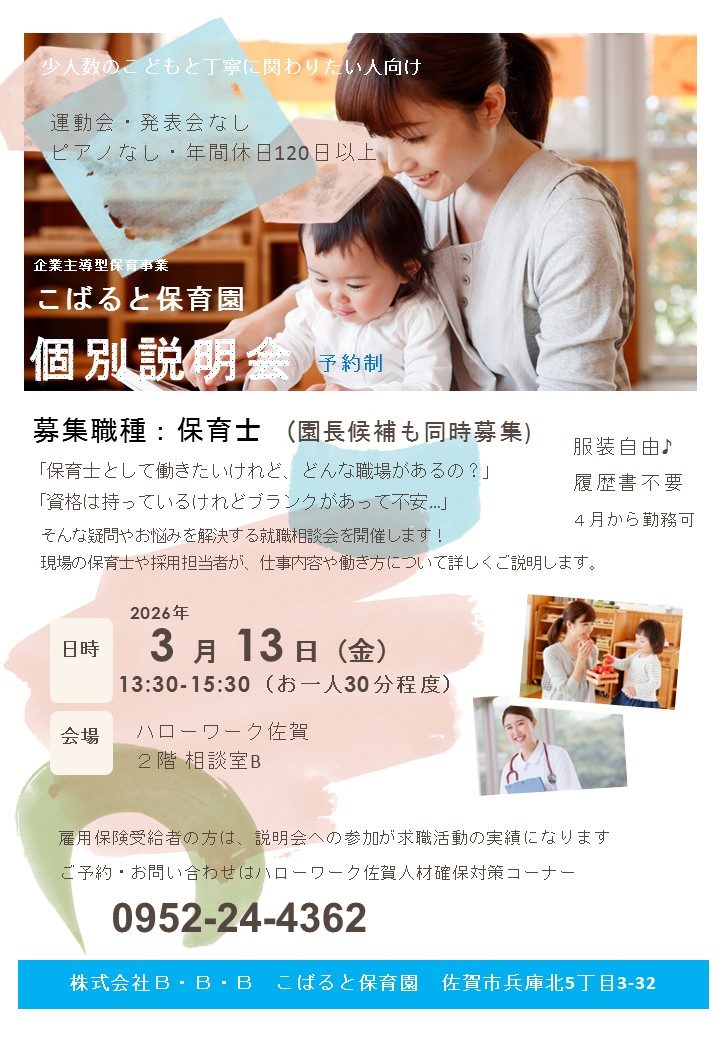 - 【3月】ハローワーク佐賀 会社説明会のお知らせ