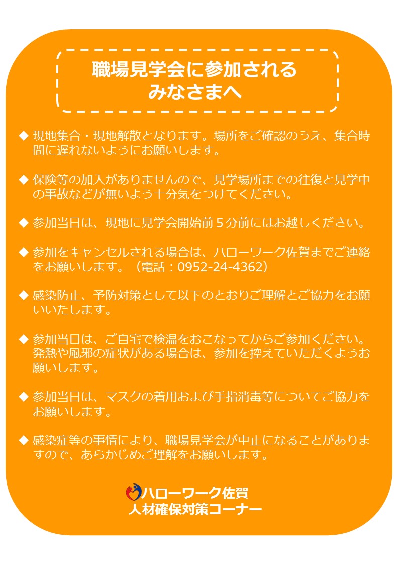 - 【3月】ハローワーク佐賀 職場見学会のお知らせ