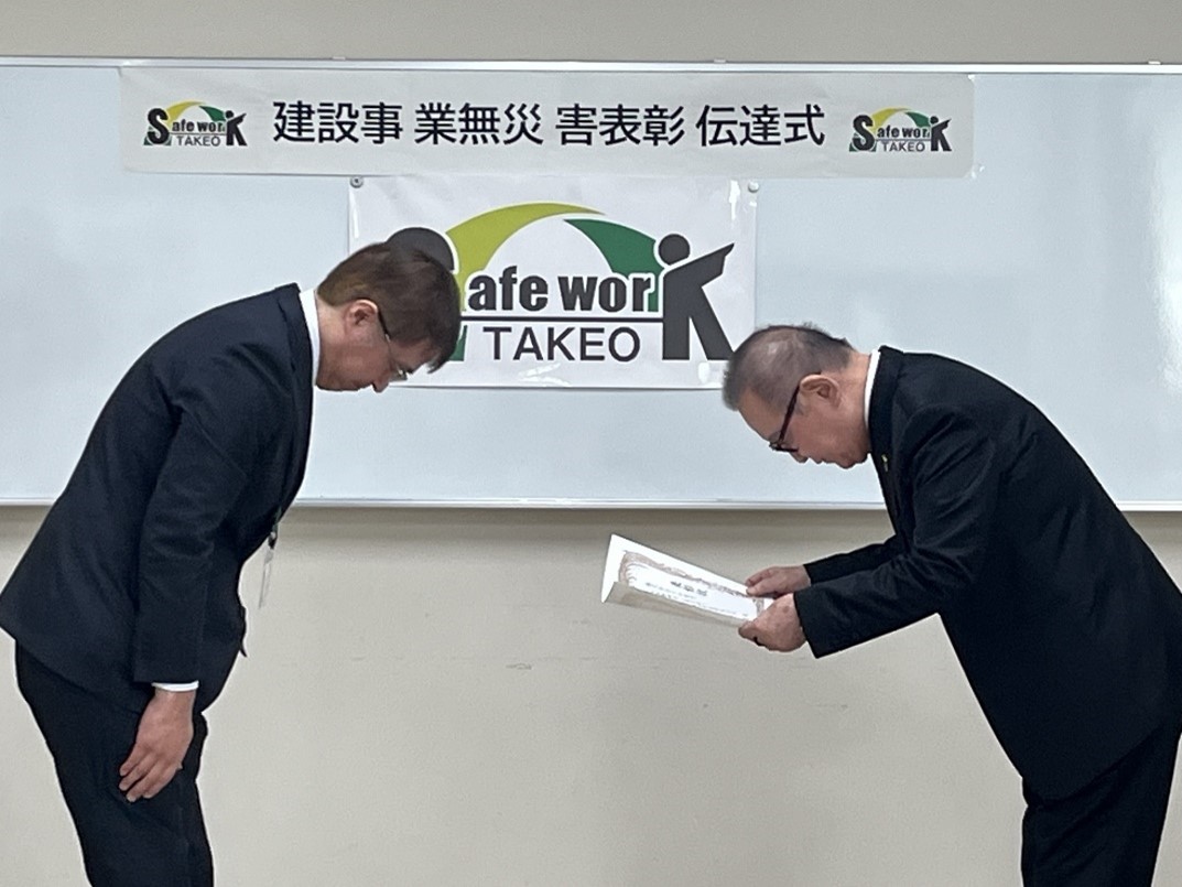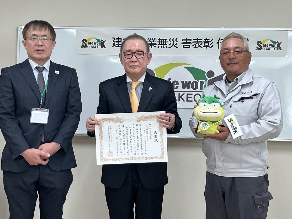 - 「株式会社大和建設」に建設業無災害表彰状をお渡ししました!(武雄労働基準監督署)