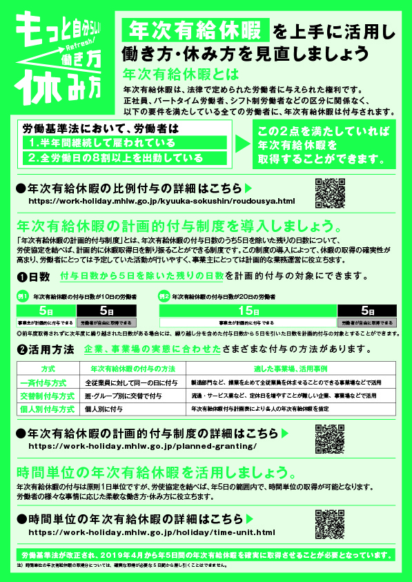 - 年次有給休暇を上手に活用し、働き方・休み方を見直しましょう