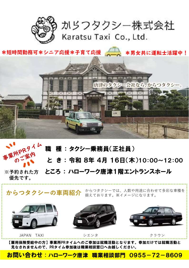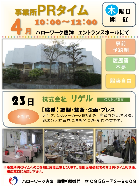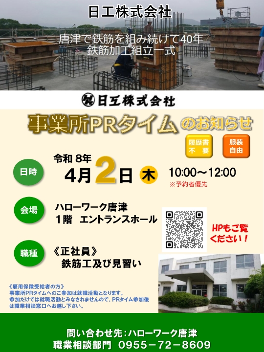 - 【ハローワーク唐津・4月】事業所PRタイムのお知らせ