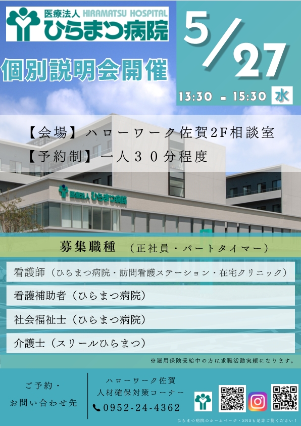 - 【5月】ハローワーク佐賀 会社説明会のお知らせ