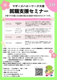 | ★ 3月10日(火) 申込期間:2/21(土)~3/8(日) →「ミニセミナー(10:00~10:30)」も開催します! * 4月14日(火) 申込期間:3/21(土)~当日 ※お子様同伴での参加も可(有料で一時預かりもあり) |
