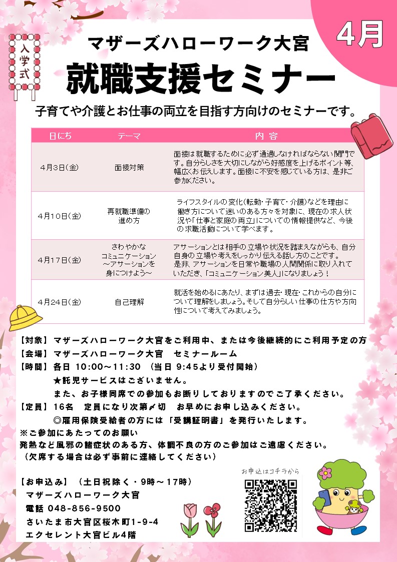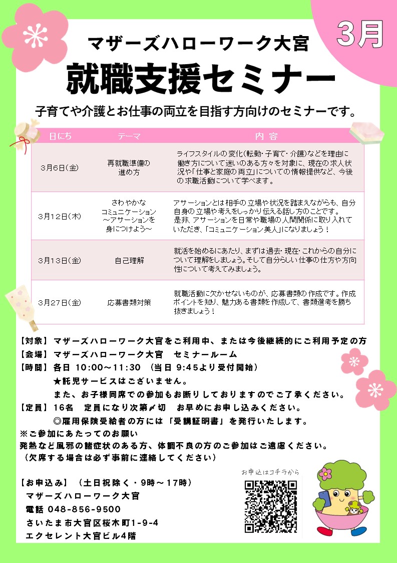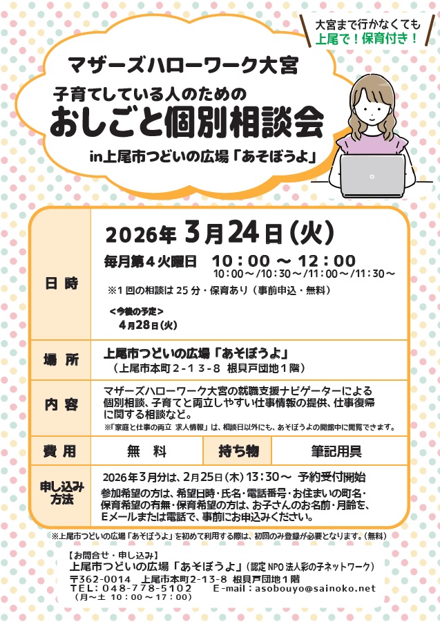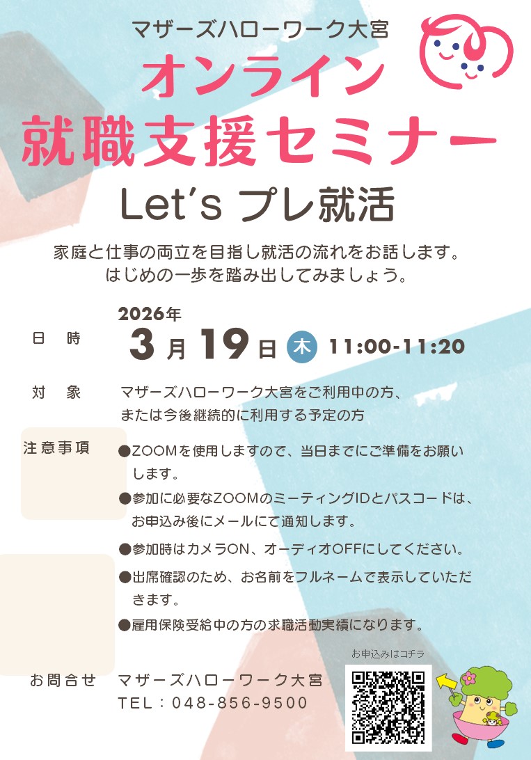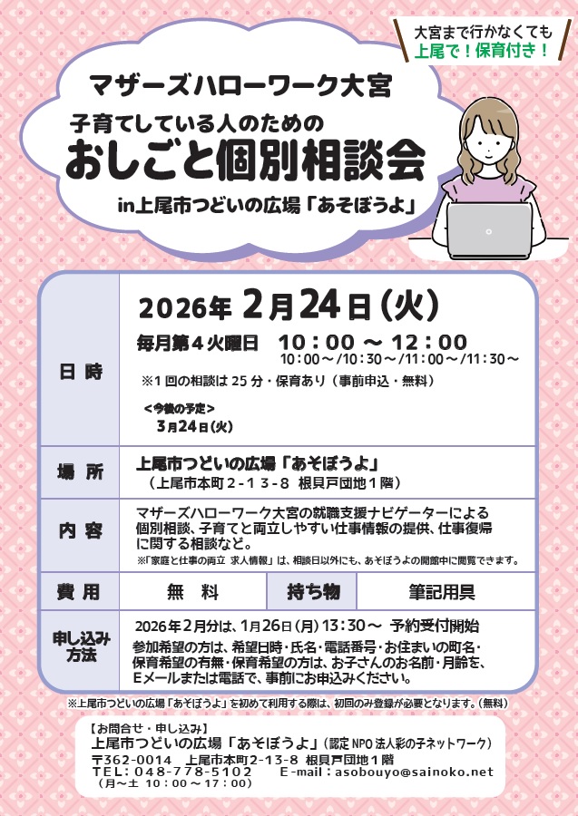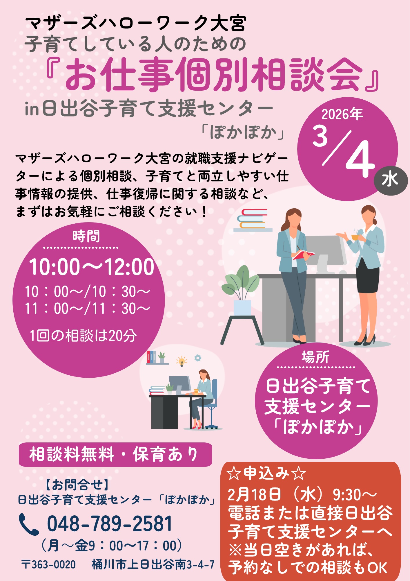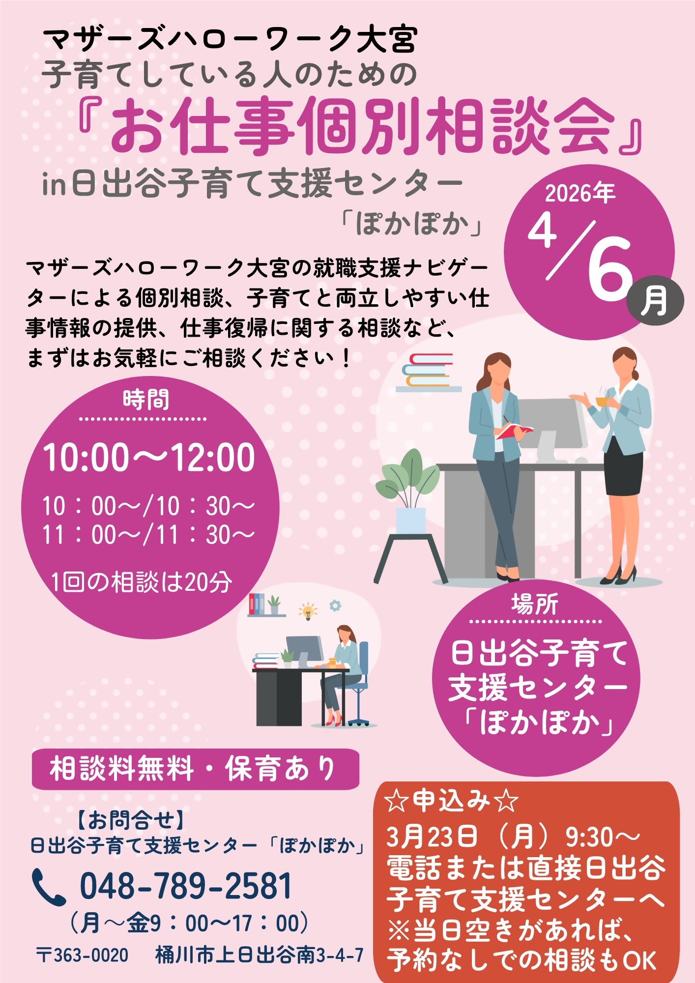 マザーズハローワーク大宮 電話 048-856-9500(土日祝除く) |