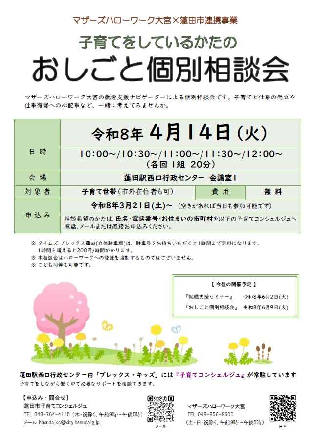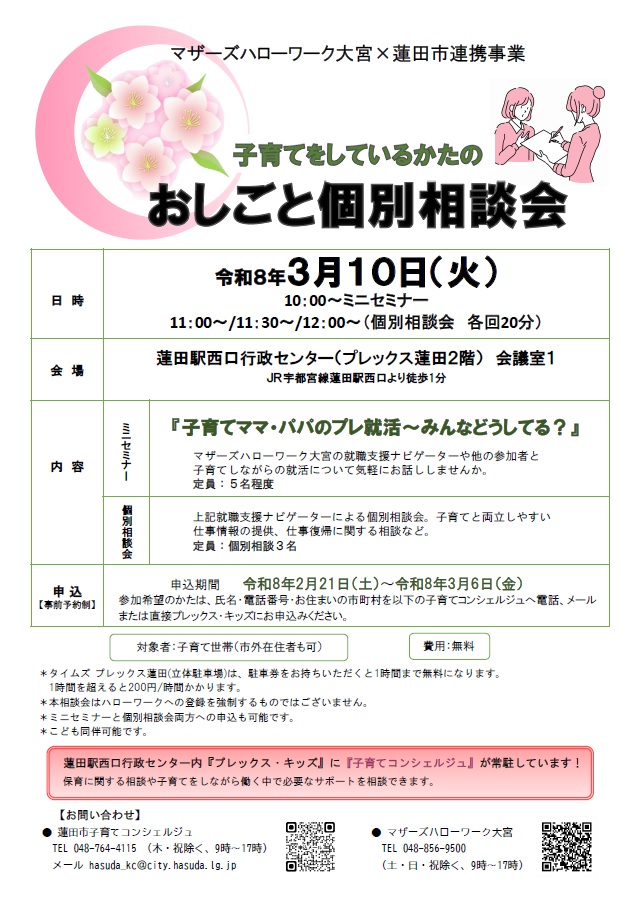 ☆マザーズハローワーク大宮×蓮田市 連携事業☆