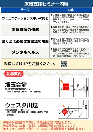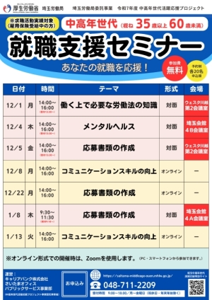 - 【埼玉労働局】中高年世代対象 12・1月開催 就職支援セミナーのご案内