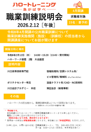 5. 【朝霞】令和8年2月12日(木)[午後]「職業訓練説明会」を開催します!
