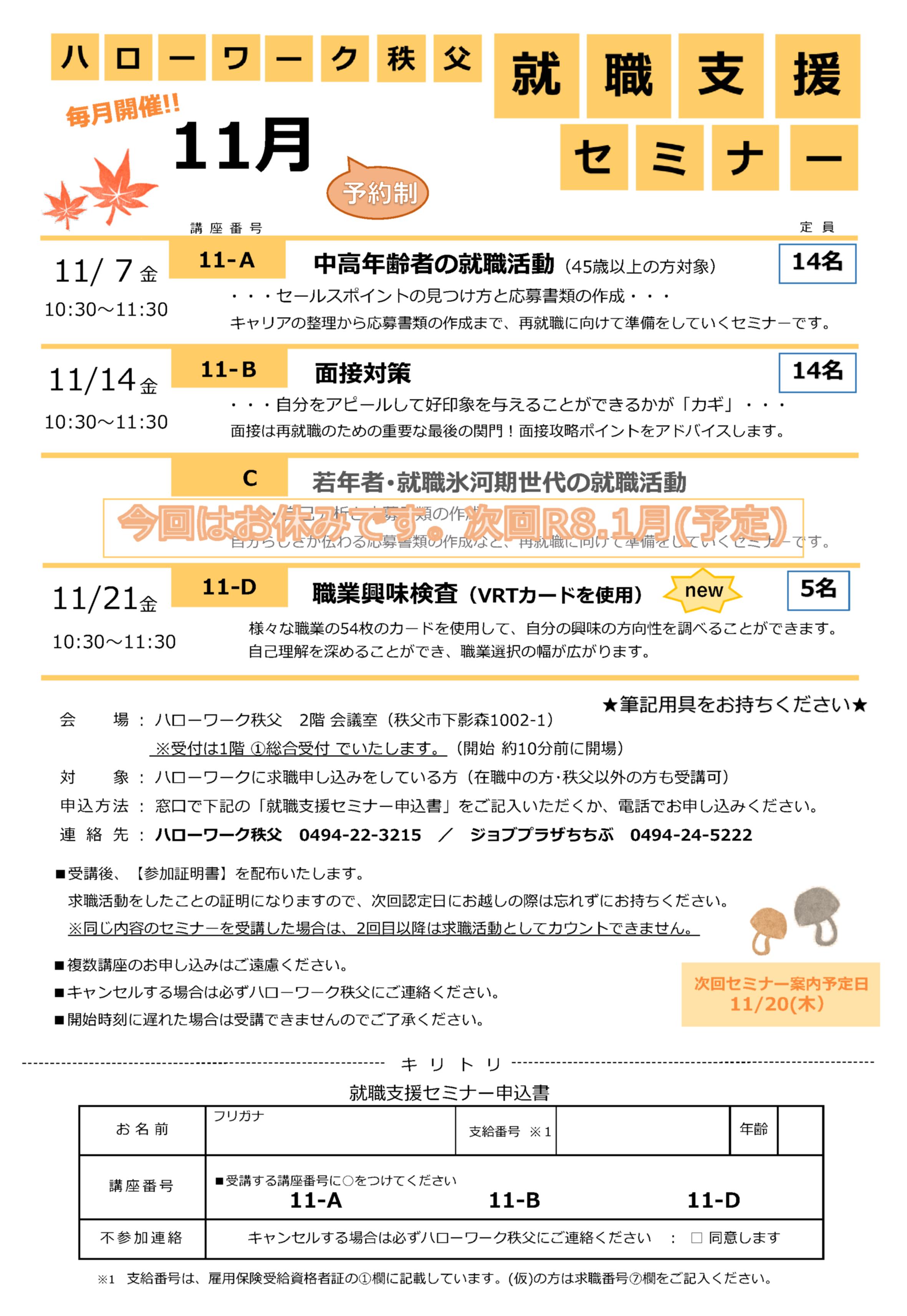 5. 【秩父】就職支援セミナーのご案内(令和7年11月分)
