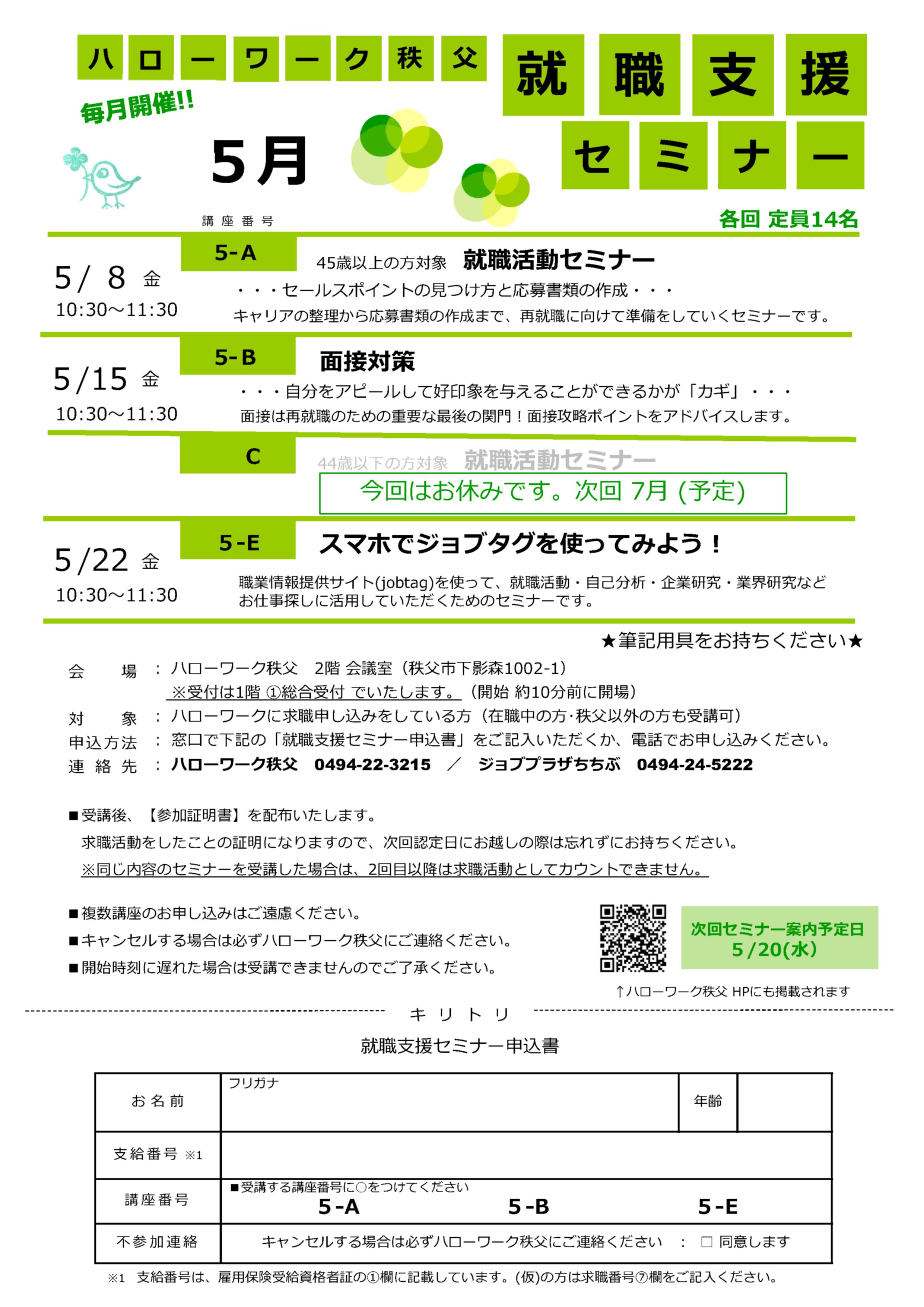 5. 【秩父】就職支援セミナーのご案内(令和8年5月分)