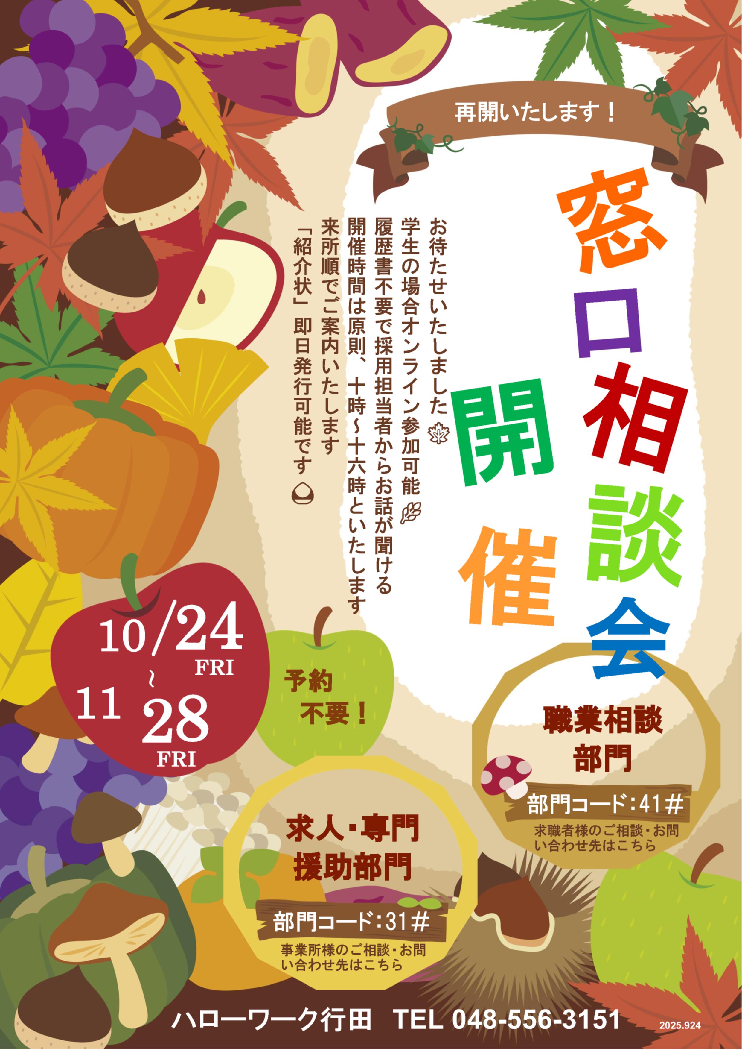 5. 【行田】10/24~「窓口相談会」再開のお知らせ