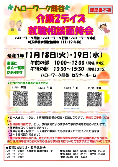 5. 【行田】11/18・19「介護2デイズ」就職相談面接会のお知らせ