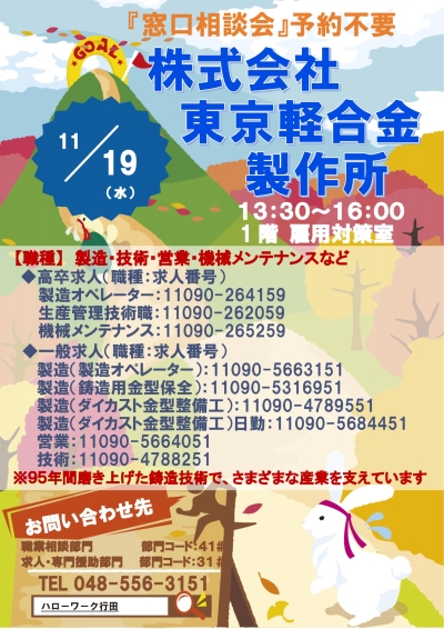 5. 【行田】11/19「窓口相談会」のお知らせ 株式会社 東京軽合金製作所