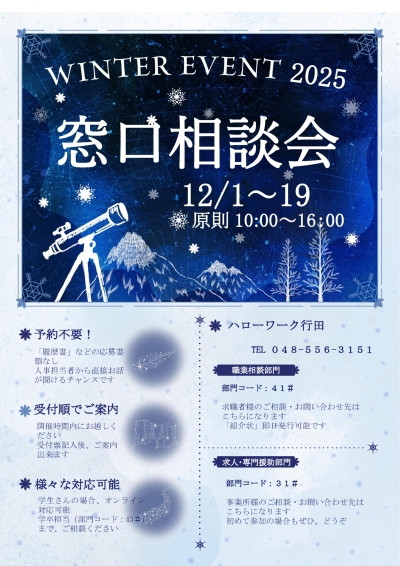 5. 【行田】12/1~19「窓口相談会」予約開始のお知らせ
