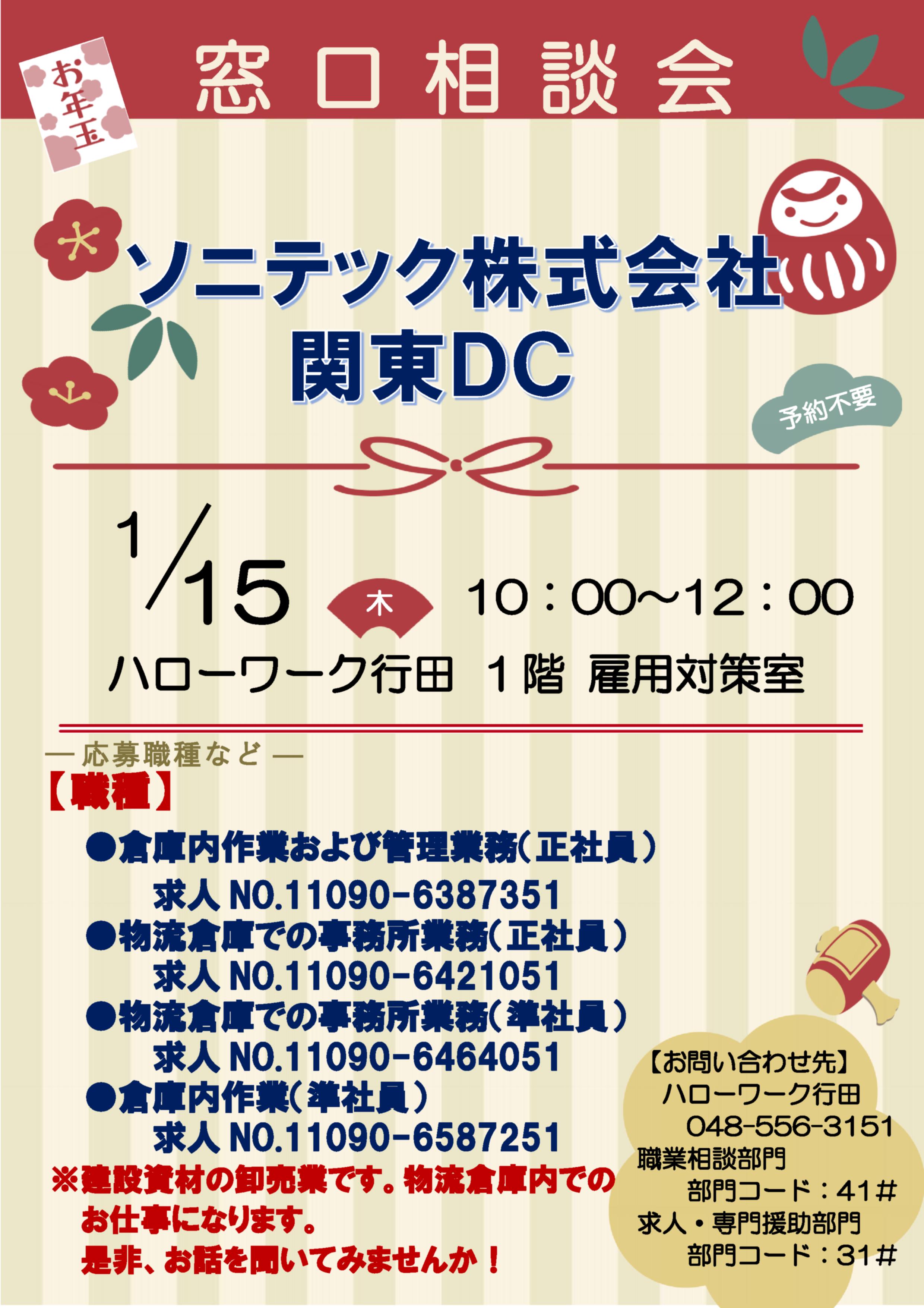 5. 【行田】1/15 「窓口相談会」のお知らせ ソニテック(株) 関東DC