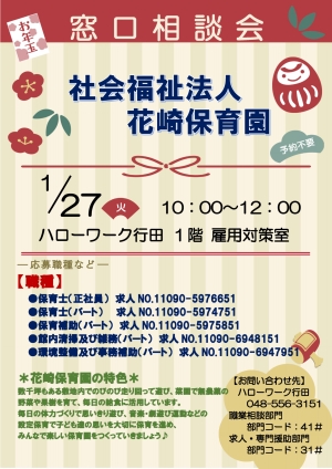 5. 【行田】1/27 「窓口相談会」のお知らせ 社会福祉法人 花崎保育園