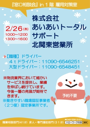 5. 【行田】2/26 「窓口相談会」のお知らせ (株)あいあいトータルサポート 北関東営業所
