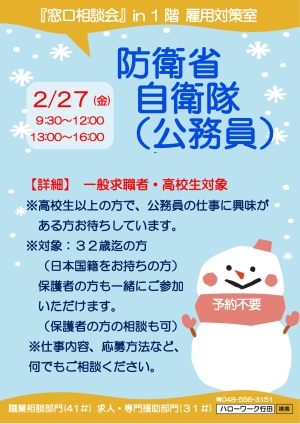 5. 【行田】2/27 「窓口相談会」のお知らせ 防衛省 自衛隊