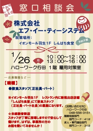 5. 【行田】1/26 「窓口相談会」のお知らせ (株)エフ・イー・ティー システム