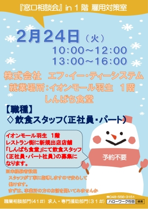 5. 【行田】2/24 「窓口相談会」のお知らせ (株)エフ・イー・ティーシステム(しんぱち食堂)