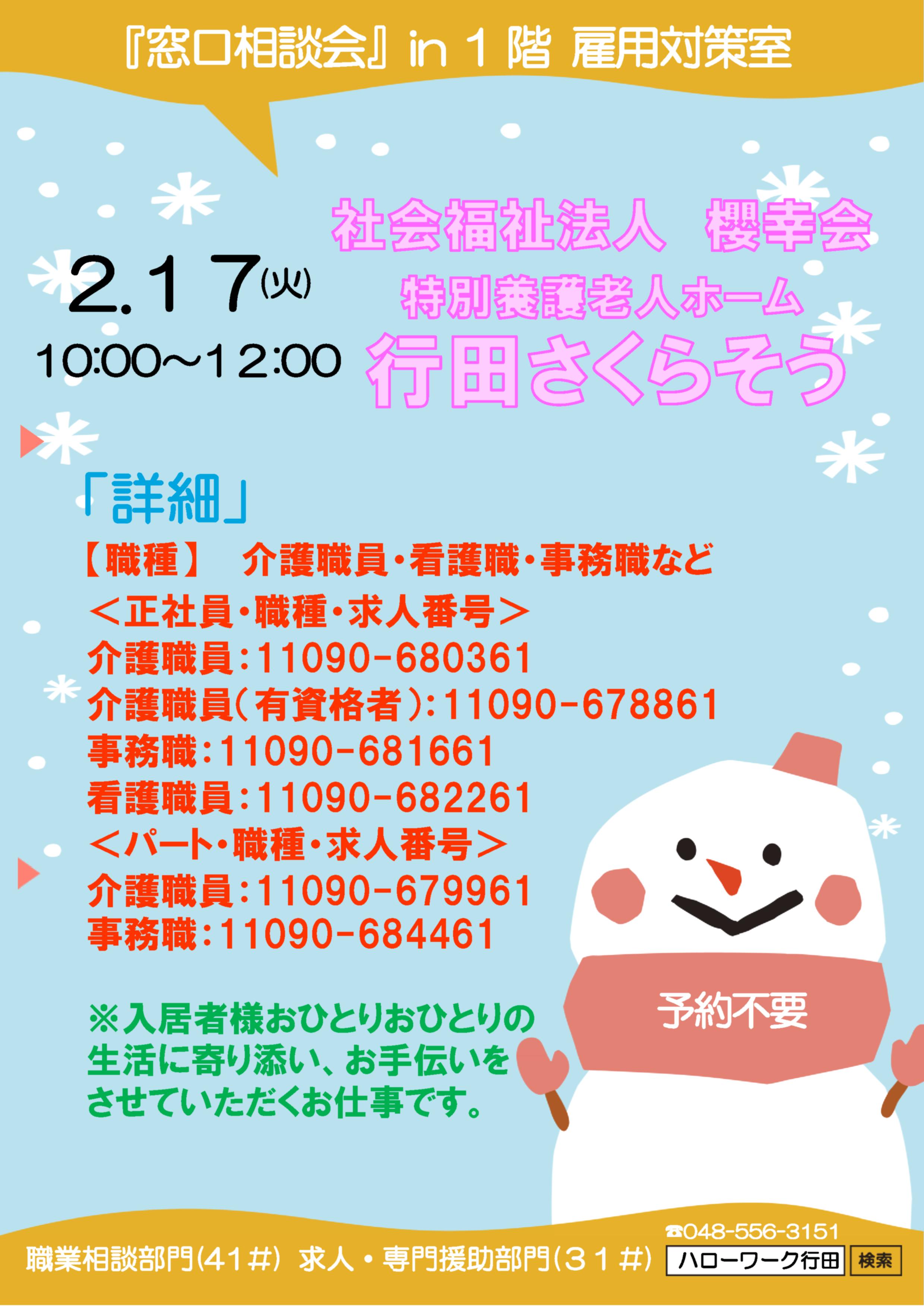 5. 【行田】2/17 「窓口相談会」のお知らせ 社会福祉法人 櫻幸会 特別養護老人ホーム 行田さくらそう