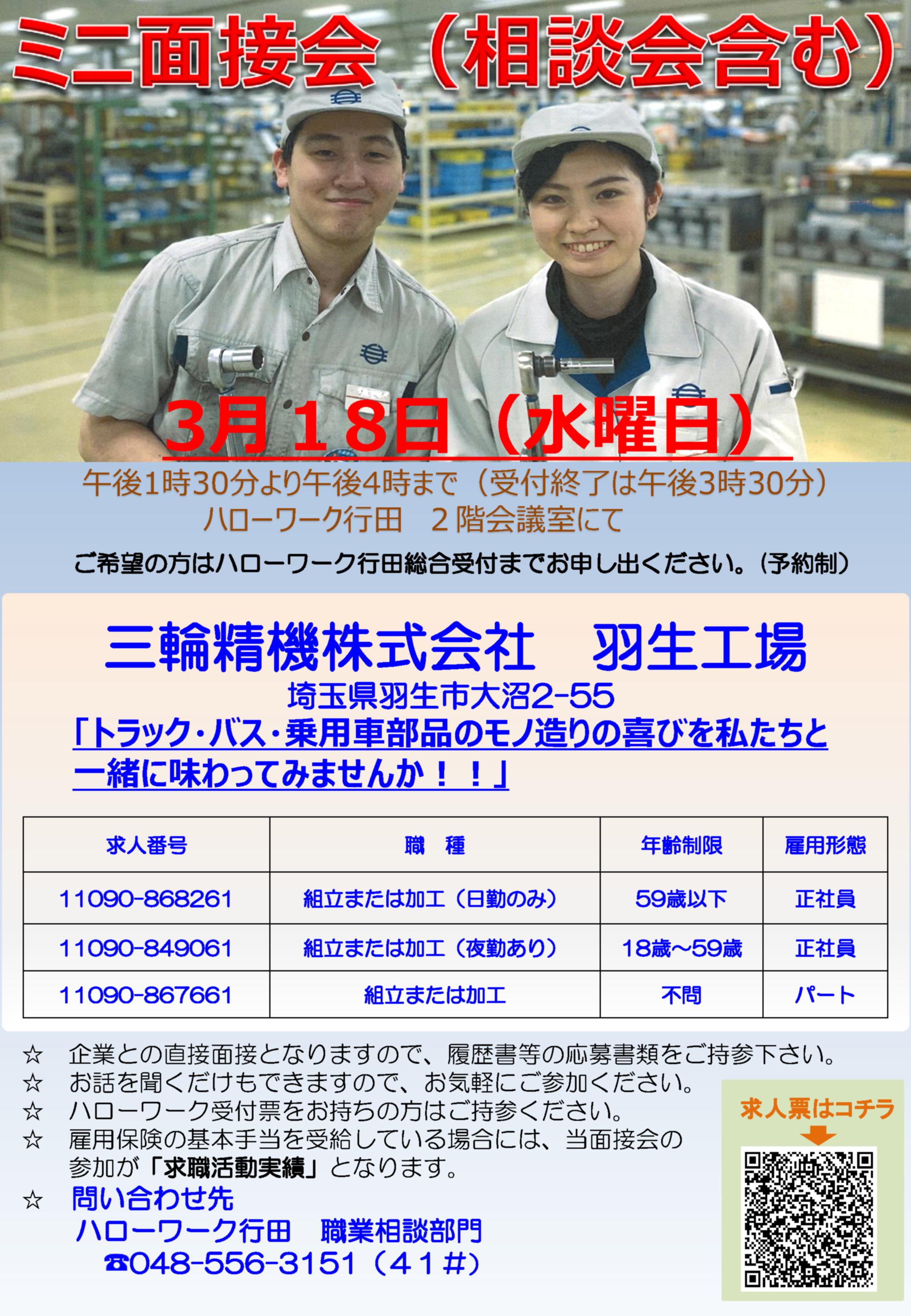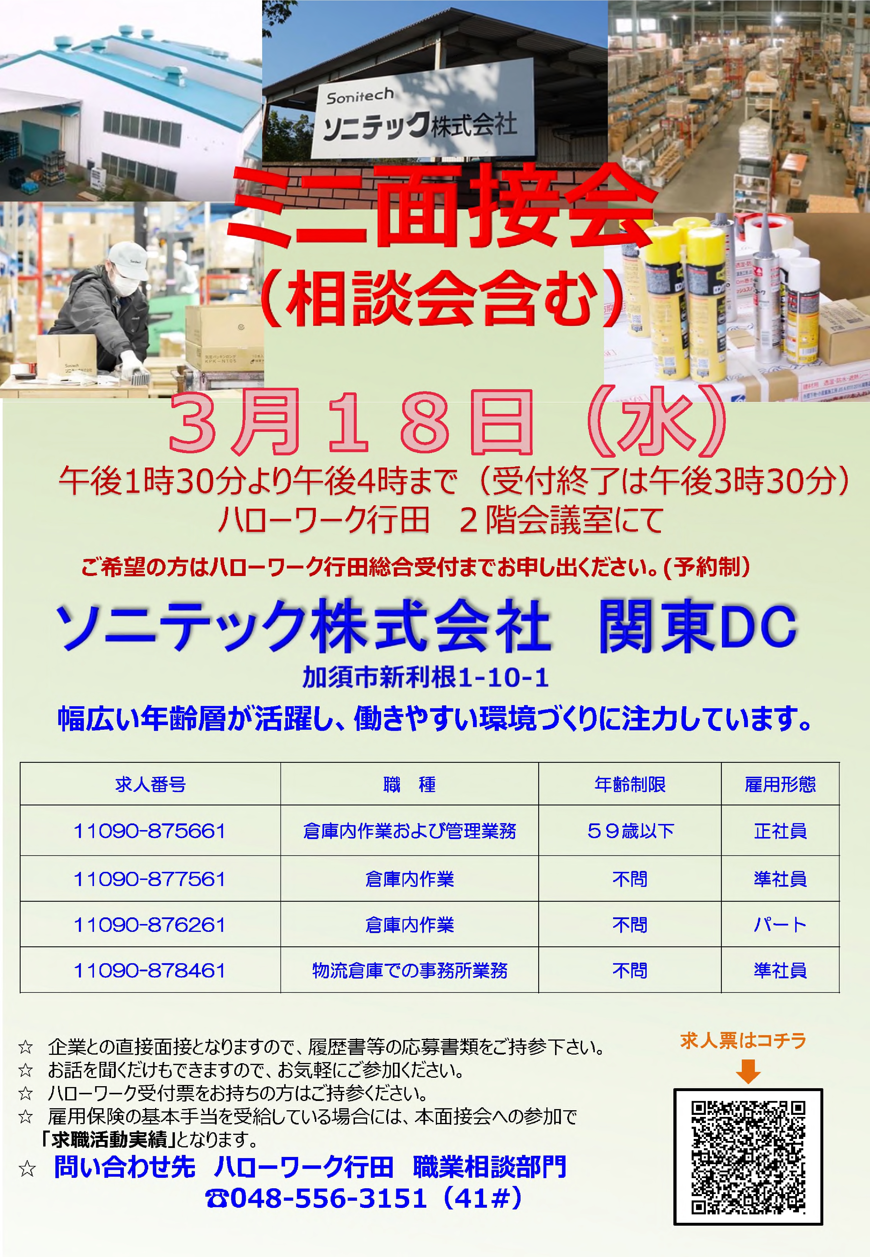 5. 【行田】3/18「ミニ相談会」のお知らせ ソニテック(株)関東DC・三輪精機(株)羽生工場
