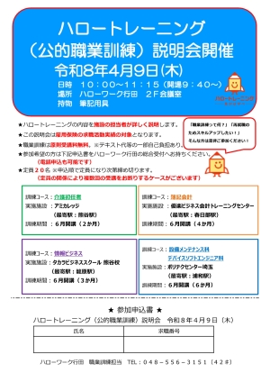 5. 【行田】4月9日(木)に「職業訓練説明会」を開催します!
